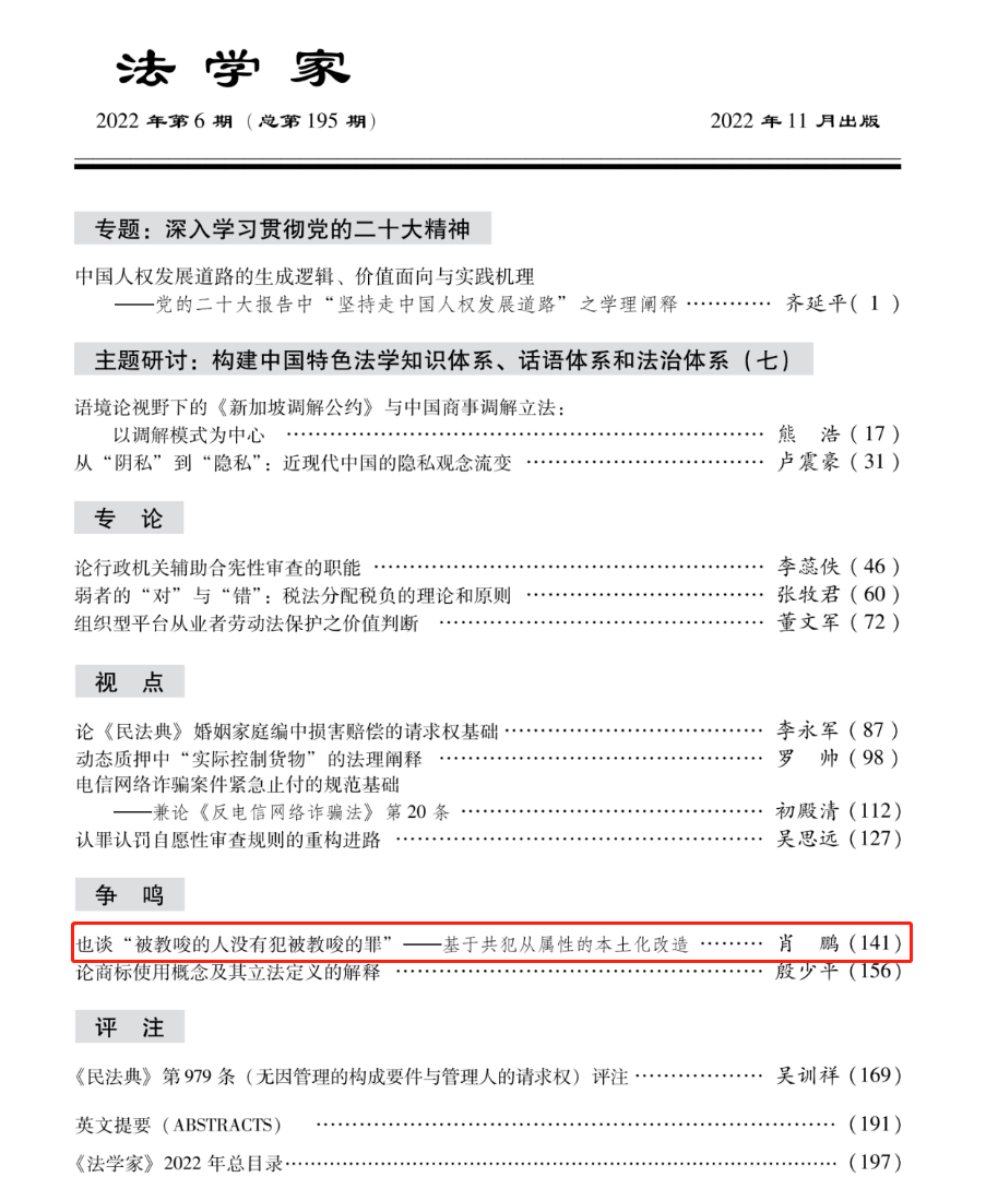 也谈“被教唆的人没有犯被教唆的罪”——基于共犯从属性的本土化改造,法学家,2022(06)
