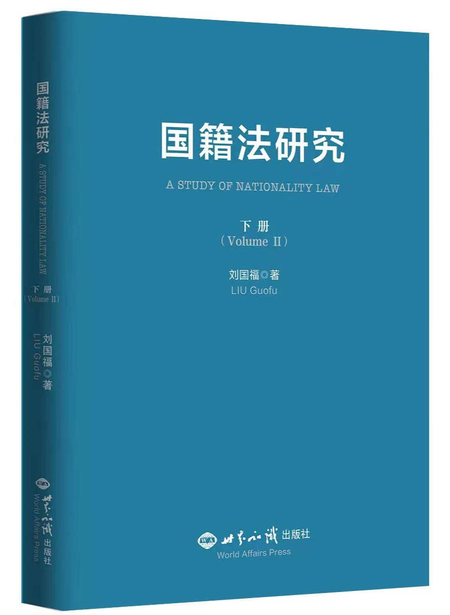 北京理工大学法学院刘国福老师独著的《国籍法研究》于2023年6月由世界知识出版社出版,是继《国籍问题的比较研究》(李浩培著,商务印书馆,1979年),《现代国籍法》(李双元、蒋新苗主编,武汉大学出版社,2016年)后,我国国籍法领域的一部重要著作。