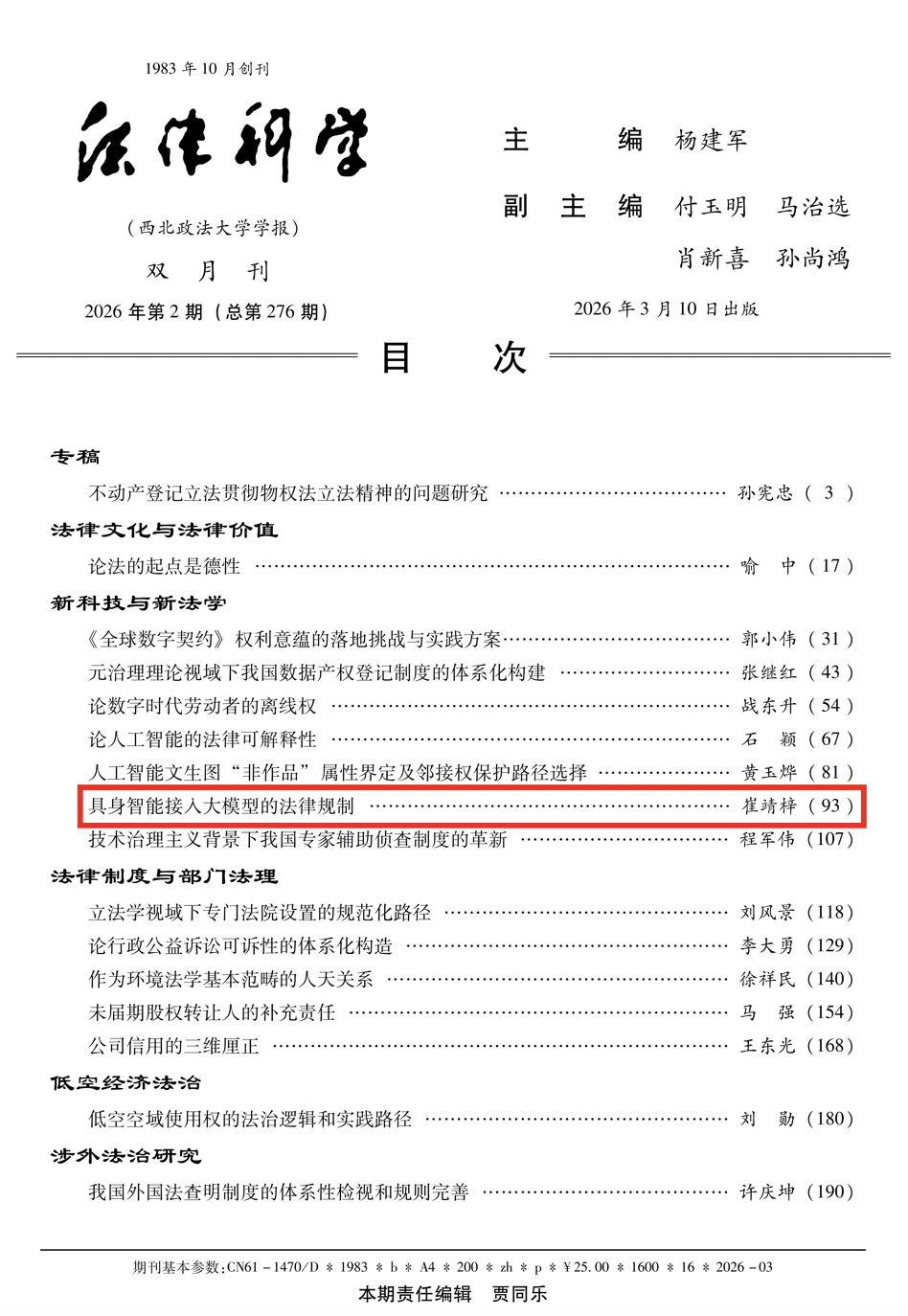 北理工法学院博士后崔靖梓在《法律科学》发表文章