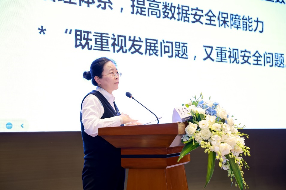 中国知识产权法学研究会理事、中关村知识产权战略研究院副院长刘劭君,代表中国科学院大学知识产权学院院长马一德教授出席研讨会并致辞。刘研究员表示,随着信息技术的迅速发展,数据已经成为现代社会的核心资源。数据要素治理和数据安全保障都是当今社会数字经济发展的重要议题,二者共同决定了数据要素开发利用如何为社会创造价值。她指出,数据安全是保障数字经济发展的基础。为了应对数据安全面临的挑战,应加强保障措施。一方面,企业及其他组织需要建立完善的数据安全保障机制;另一方面,国家也应加强数据安全监管,制定相应的法律法规以及行业标准,保证数据的合法性和合规性。此外,还应从文化制度等方面入手,提高全社会的数据安全意识,加强数据安全教育宣传,培养更多数据合规人才。她最后强调,要重视数据要素的价值和作用,加强数据技术的研究开发,推动大数据产业的发展壮大。只有不断推动技术进步,同时建立健全相关法律制度体系,才能实现数据要素治理的可持续发展与繁荣。