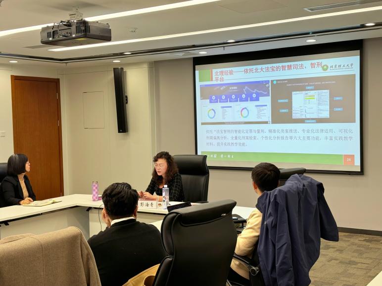 2023年11月20日下午,我校法学院教授、博士生导师彭海青应中国政法大学教师发展中心邀请,参与“教学信息化能力提升工作坊”活动,在中国政法大学研究生院图书综合楼813会议室做“数字时代混合式法律实践教学改革”专题讲座。中国政法大学教师发展中心杜冰子老师主持,来自中国政法大学数据法学研究院、法学院、法治政府研究院的10余位教师参加了此次活动。