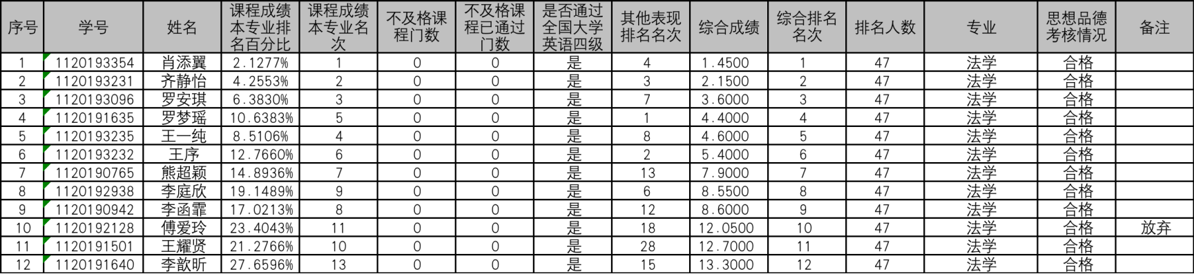 法学院2023年首批按专业学习成绩和表现综合排序的推荐免试攻读研究生候选人名单公示