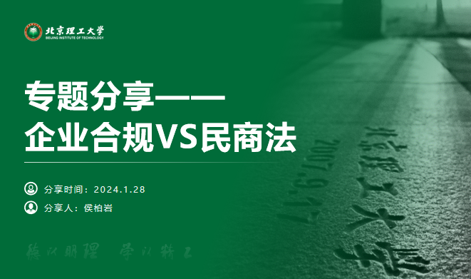 2023级法律硕士研究生侯柏岩同学就“企业合规VS民商法”这一主题进行了专题分享,主要内容为概念释义、发展历程、企业合规VS民商法、发展趋势四个部分。第一部分主要介绍了企业合规的概念、目的、对象和手段,以及常见分类。第二部分主要从国外和国内两条线介绍了企业合规的发展历程。第三部分主要介绍了企业合规与民商法的密切关系和相互作用,并对相关法律法规和部分法条进行了重点介绍。民商法为企业的商事行为提供了指引,是企业合规中相当重要的一部分,企业合规体系的建设和有效实施又能为民商法适用提供安定有序的环境。最后一部分主要介绍了企业合规的发展趋势以及企业合规师与现有相关法律岗的融合发展。