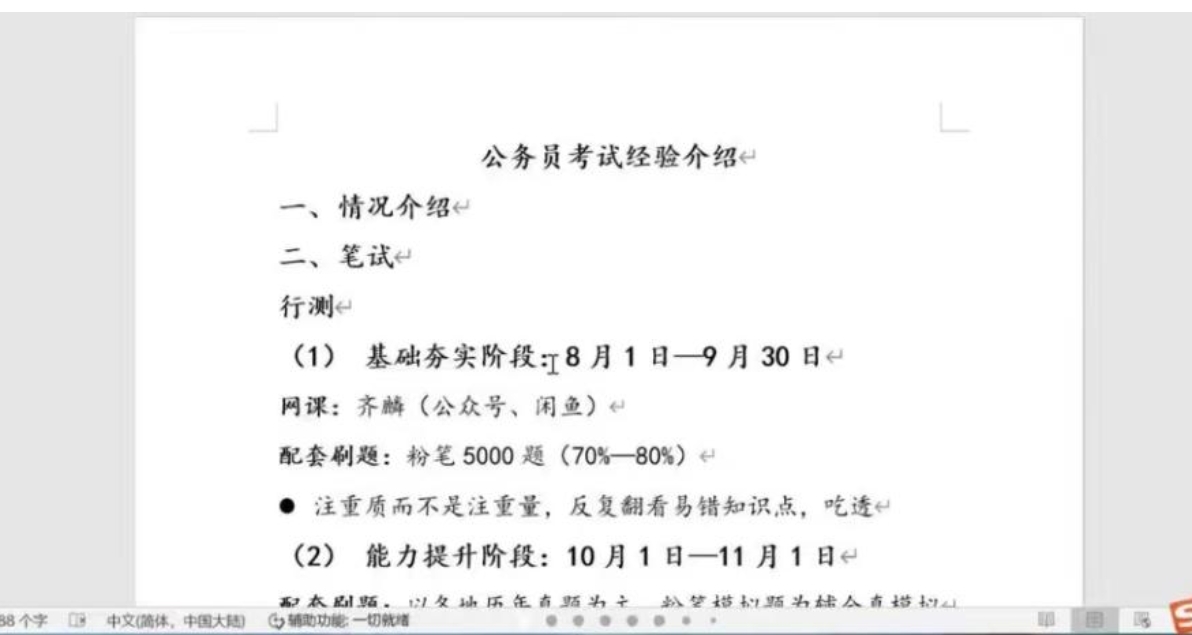 第二位分享人是刘家源,现已通过某法院面试。刘家源主要从笔试和面试两方面进行分享。笔试方面,他对行测和申论的学习图书与网课进行了推荐,并强调,在备考过程中要以各地历年真题为主、模拟题为辅来训练。同时,备考过程中要及时整理错题,时常温习,方便后期冲刺。面试方面,刘家源提到面试的本质是考察个人积累和素养,要在平常勤于练习,在日常的积累中外化于行,内化于心。最后,刘家源强调一定要把握好复习的节奏,不要“恋战”,把握好时间的安排。