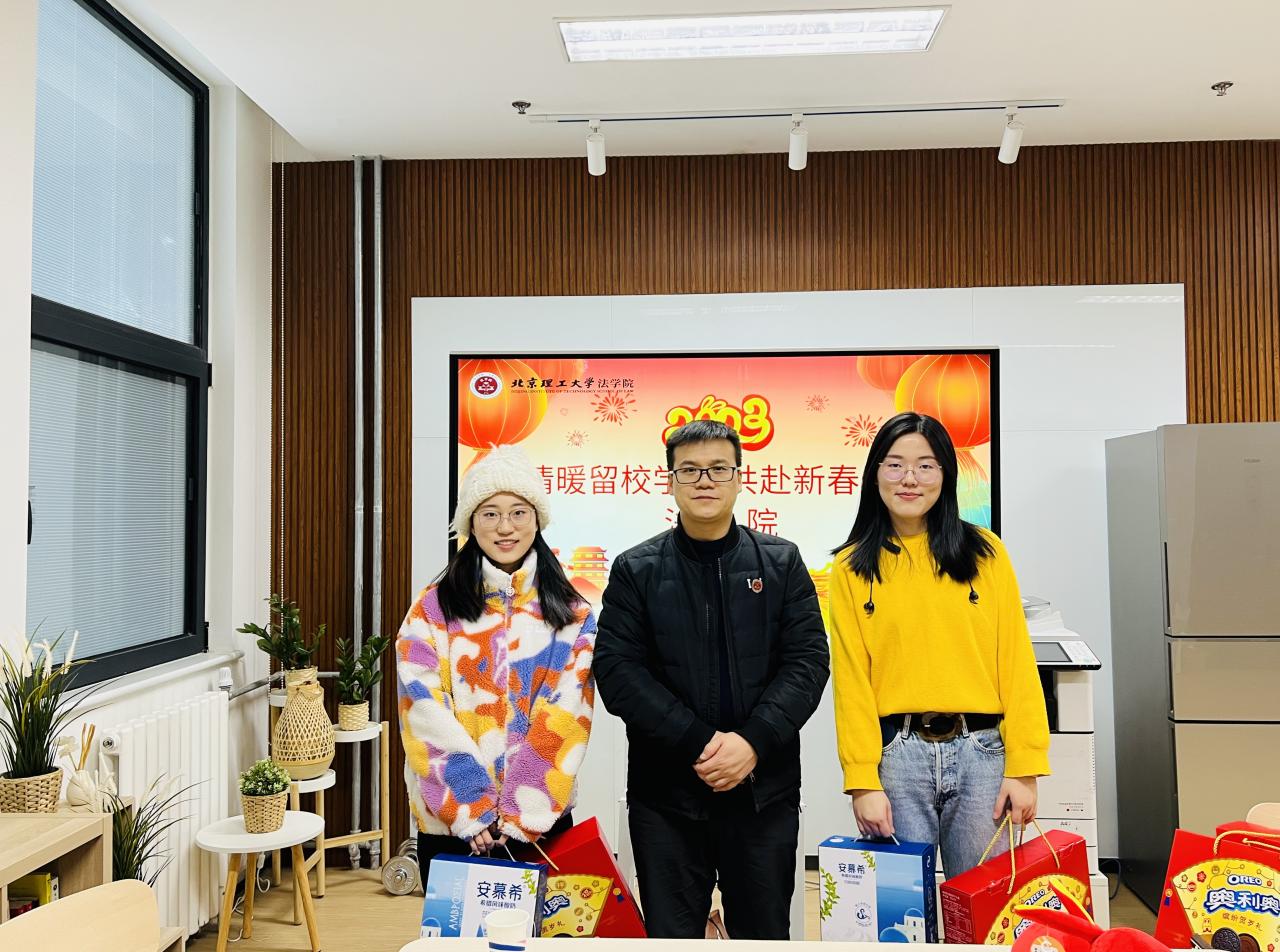 金虎辞旧吟冬去,玉兔迎新跃春来。在兔年春节来临之际,为深入了解2023年寒假留校学生的假期生活,让同学们切实感受到学院的关心与温暖,1月16日下午,北京理工大学法学院党委副书记、副院长马晓龙代表法学院慰问寒假留校学生,为同学们送上新春的祝福和节日的问候。